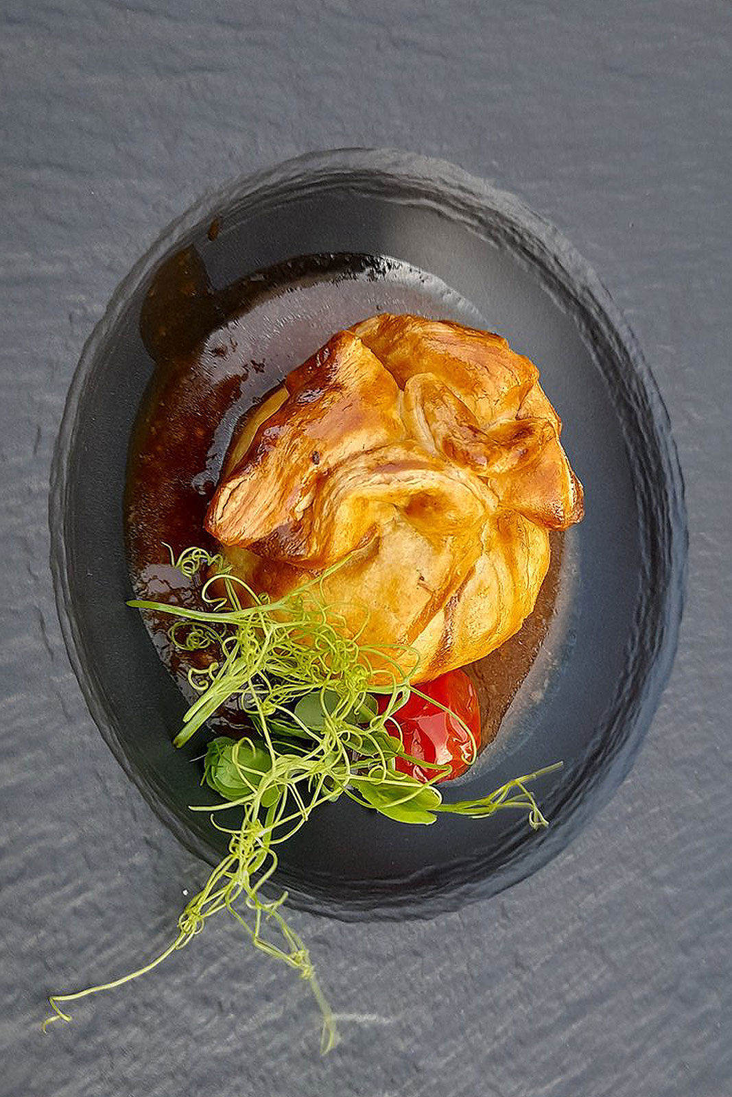Lijepi prostor s pogledom na bedeme Starog grada, ugodan interijer. Jako dobar i brz servis, ali ostavlja se gostu dovoljno vremena između sljedova. Hrana je ukusna, lijepe veličine porcija i promišljenih kombinacija okusa. Kupaža kućnog vina ima malo povišene kiseline, idealno za gemišt prema preporuci konobara, ali funkcionira i samostalnp uz mesna jela. Ukupan dojam je odlična vrijednost za novac.